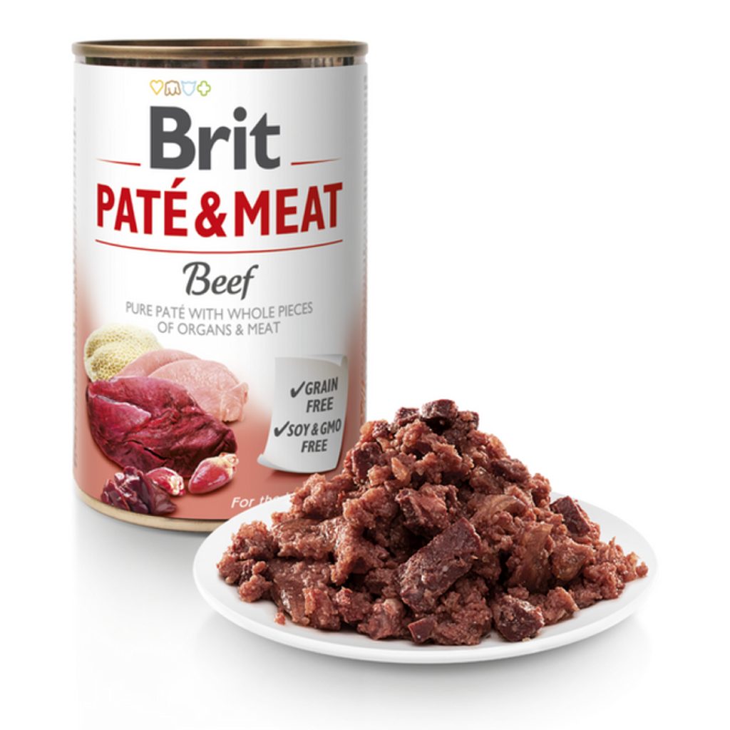 Die köstliche Dose Brit Paté ist eine Kombination aus weichen Rindfleischstücken und Fleischpastete. Ein schmackhaftes Alleinfuttermittel für jeden Hund.