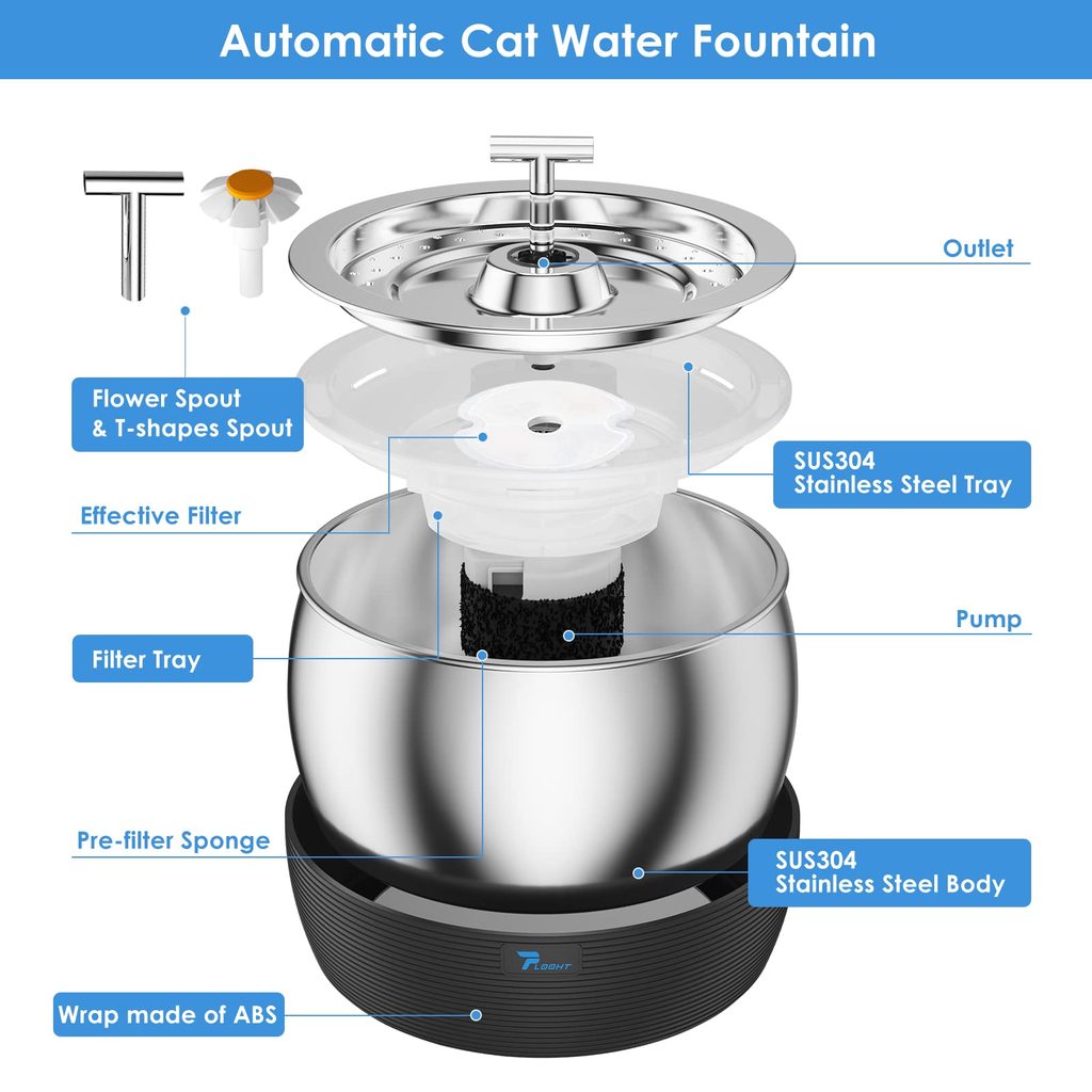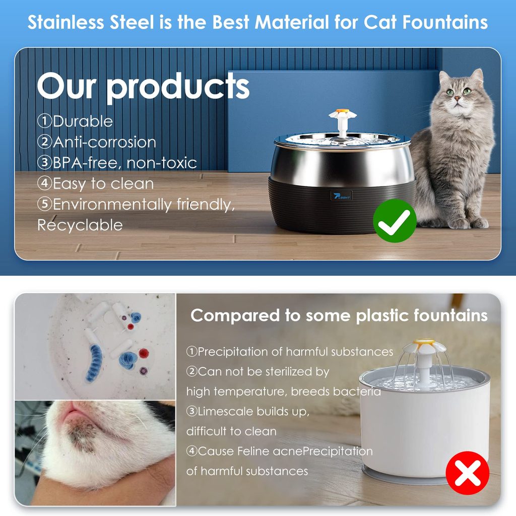 Der Petwant PWS 107 ist ein Edelstahlbrunnen, der aufgrund seiner Größe für Katzen und kleine Hunde geeignet ist. Das Edelstahlmaterial ist sicher, leicht zu reinigen, langlebig und bildet keine Bakterien. Der Katzenbrunnen hat ein Fassungsvermögen von 3 Litern, so dass Ihr Haustier genügend Wasser zu trinken hat, auch wenn Sie sich nicht um es kümmern können.