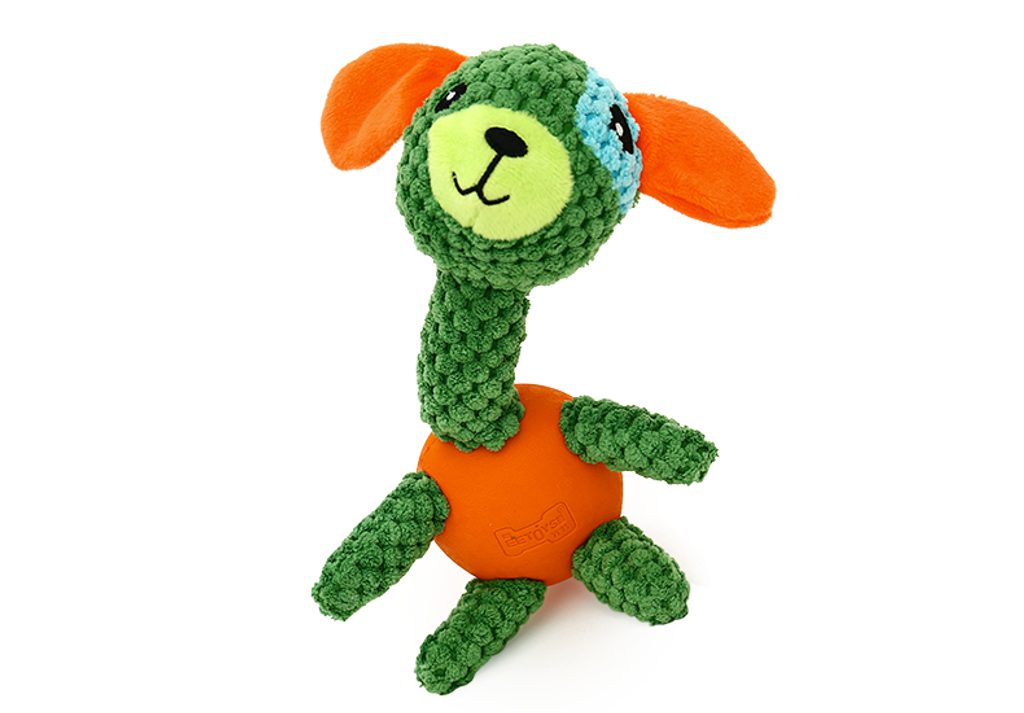 Spielzeug bestehend aus einem quietschenden Ball und einem bunten Plüschhund. Es ist für kleine und große Hunde geeignet, bietet ihnen stundenlang großen Spaß und wird nicht zerstört. Der Hund reinigt beim Kauen des Spielzeugs seine Zähne und baut außerdem Stress ab. Sie können mit Ihrem Hund an dem Spielzeug zerren oder das Apportieren damit üben.