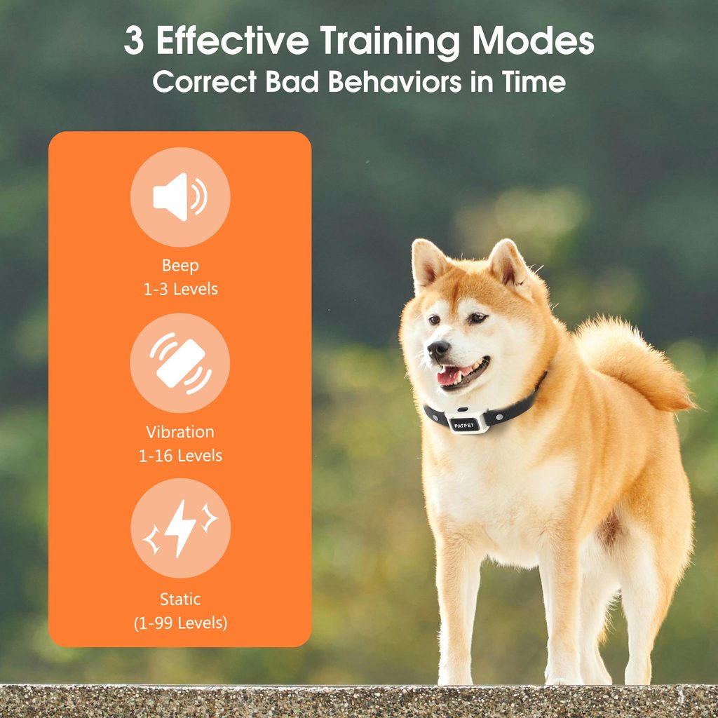Das elektronische Trainingshalsband Patpet 681 verfügt über die Funktionen Ton, Vibration und Impuls. Die Vibrationsstärke ist in 16 Stufen einstellbar, der Impuls kann in 99 Stufen und der Ton in 3 Stufen eingestellt werden.