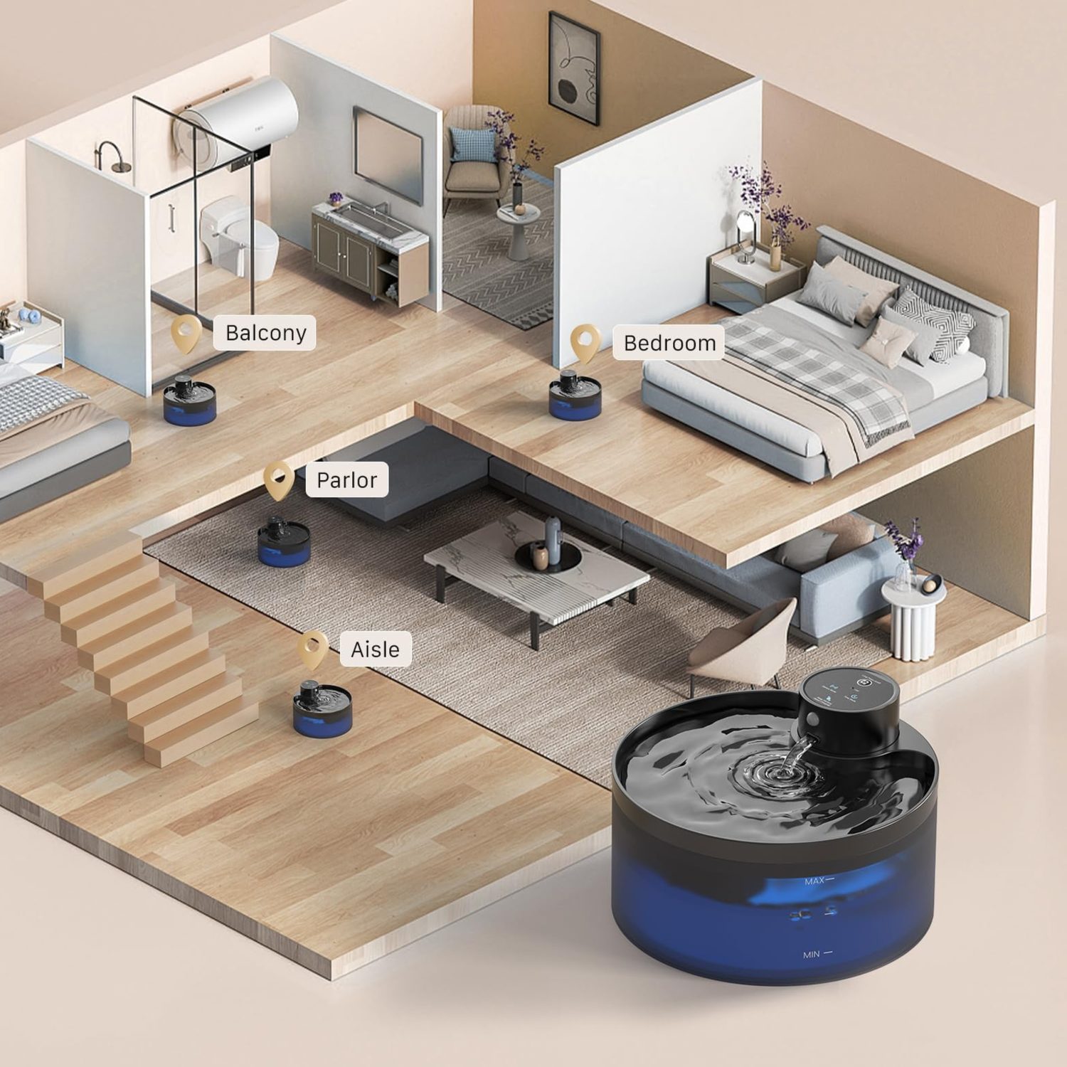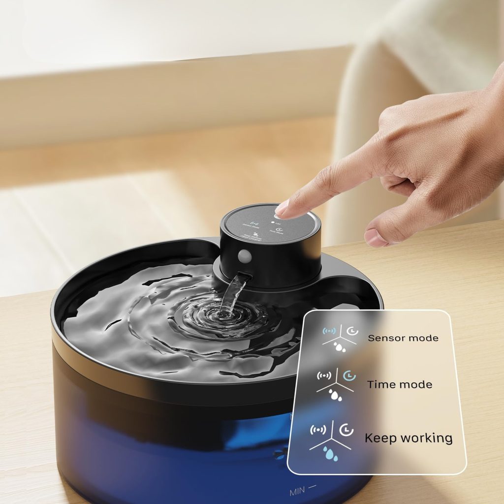 Der Petwant PWL-005 Smart ist ein intelligenter Trinkbrunnen für Katzen, der den Wasserfluss startet, sobald sich das Tier nähert. Mit einem Fassungsvermögen von 3,2 l deckt er den Flüssigkeitsbedarf für bis zu 10 Tage, arbeitet leise mit 25 dB, kann kabellos aufgestellt werden und verfügt über ein sanftes blaues Licht, das den Wasserstand anzeigt. Ideal für gesundes Trinken und den Komfort Ihrer Katze.