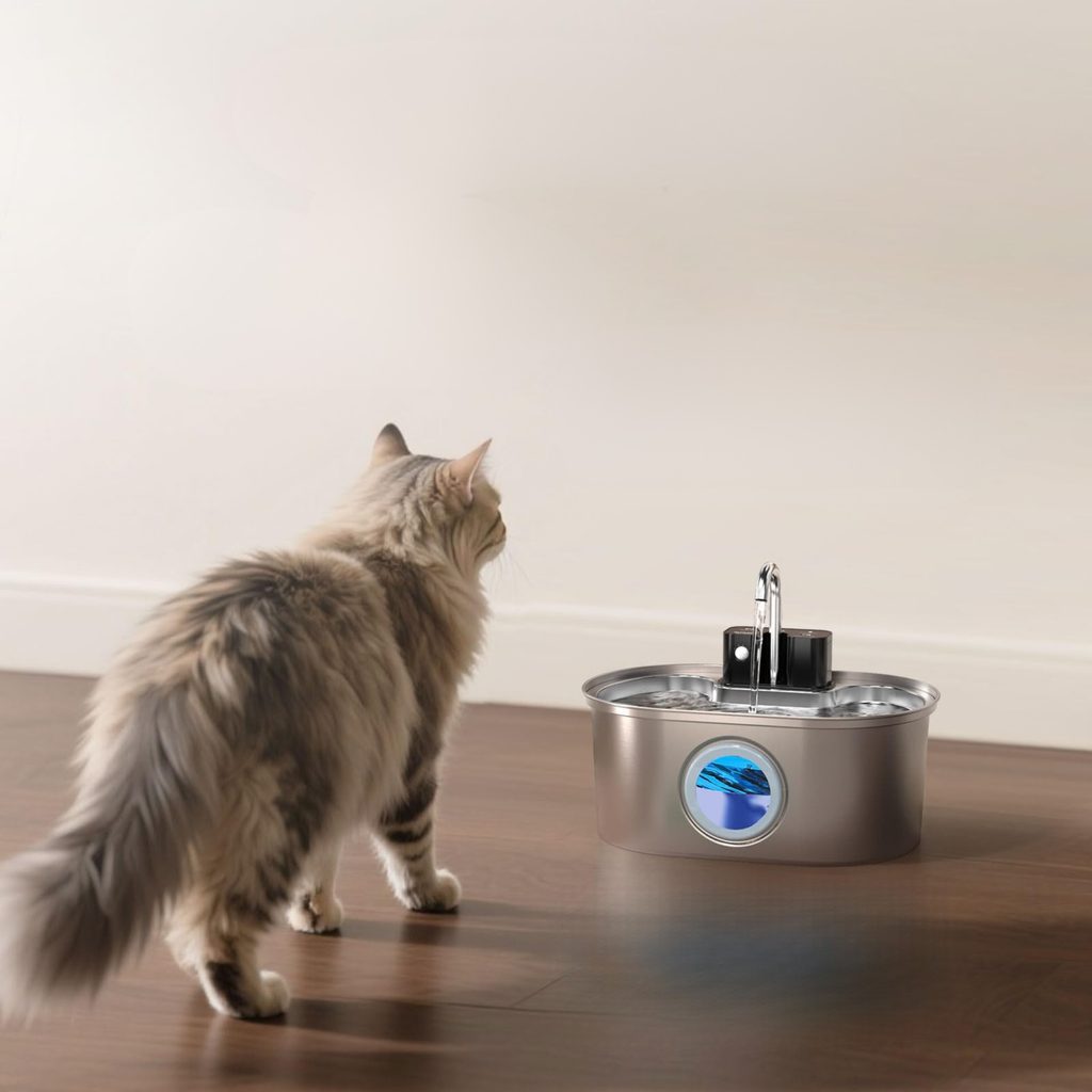 Die Fontänenwanne ist aus hochwertigem Edelstahl 304 gefertigt, der kratzfest und leicht zu reinigen ist. Außerdem ist sie spülmaschinenfest, sodass sie schnell und hygienisch gereinigt werden kann. Die Kombination aus widerstandsfähigem Material und praktischer Pflege sorgt für langfristige Zufriedenheit bei Ihnen und Ihrem Haustier.