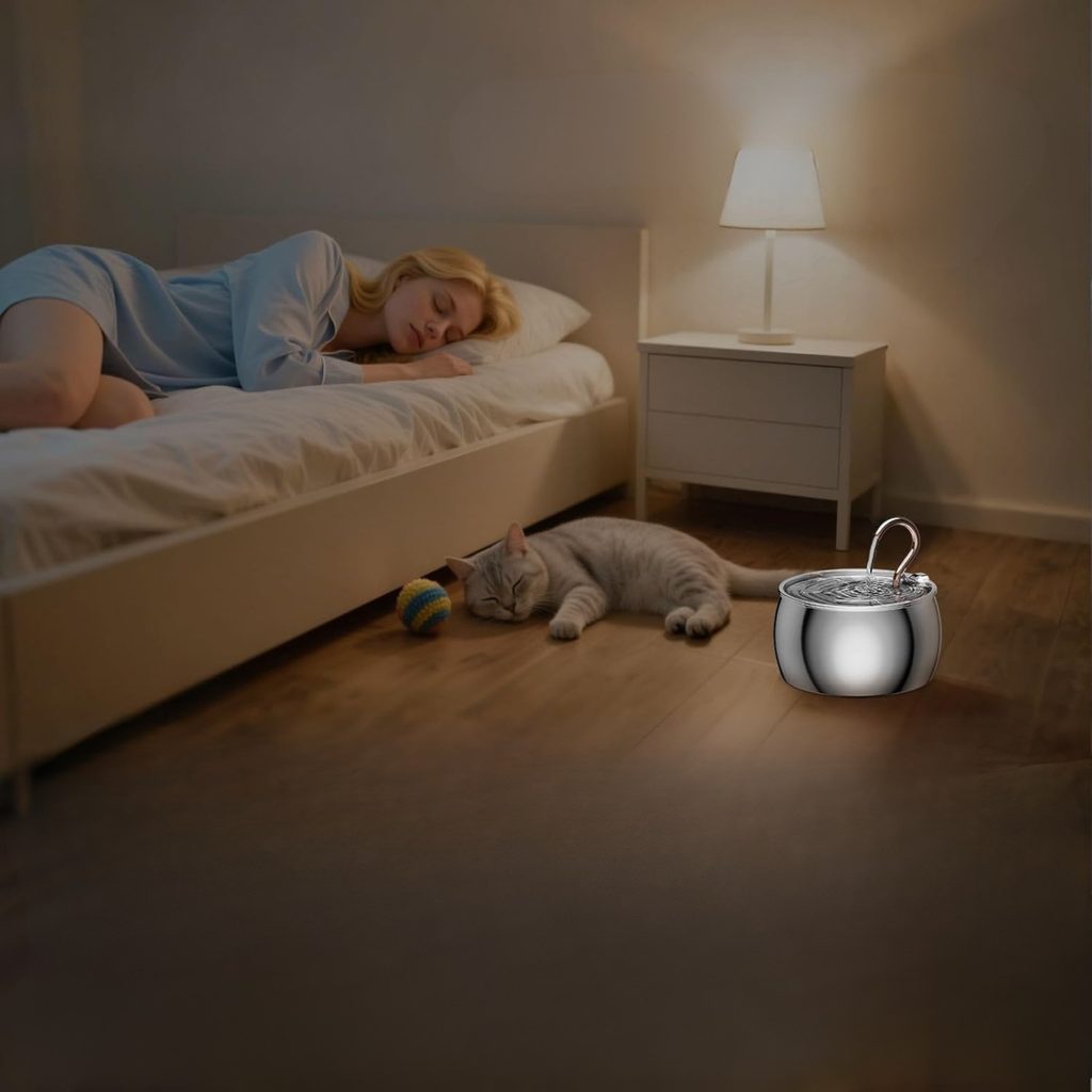 Der Trinkbrunnen Petwant PWS-161 zeichnet sich durch seinen eleganten vergoldeten Wasserhahn aus SUS304-Edelstahl aus. Dank ihres doppelten Filtersystems entfernt sie Haare, Futterreste und Gerüche und liefert gesundes und schmackhaftes Wasser. Mit einem Fassungsvermögen von 2,5 l reicht er 6–9 Tagen für eine erwachsene Katze mit einem Gewicht von 5 kg und bietet 2 Wasserflussmodi, die unterschiedliche Trinkgewohnheiten von Katzen unterstützen.