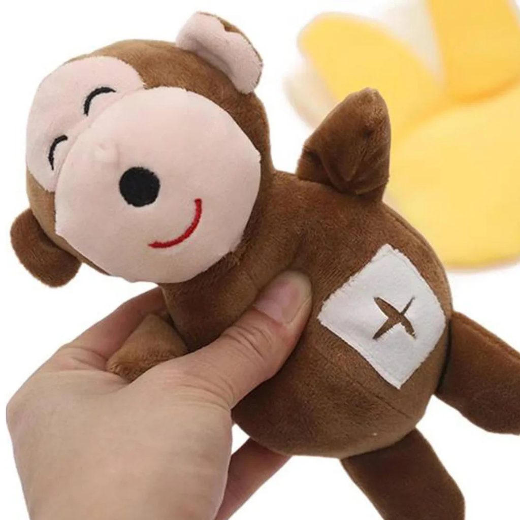 Süßes Plüschtier für Hunde in Form eines Äffchens, versteckt in einer Banane. Weich, lustig und ideal zum Kuscheln und sanften Spielen.