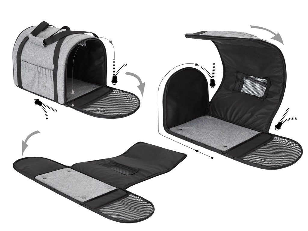 • Praktische Details: An der Seite finden Sie eine Tasche für Leine, Leckerlis oder Dokumente. Für Stabilität auf ebenem Untergrund sorgen Kunststofffüßchen an der Unterseite.